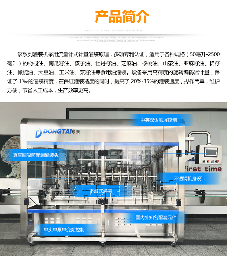 橄欖油和我們平常家里的食用油一樣,完全可以用來炒菜,煎東西等,很便捷很適宜的方法就是涼拌菜了。在炒菜時出鍋后,表面淋上一層初榨橄欖油,芳香撲鼻,增加飯菜的香氣。涼拌蔬菜時,淋上一層初榨橄欖油,可增加蔬菜亮澤,保留了蔬菜中的營養(yǎng)元素,初榨橄欖油的用處還是很多的。橄欖油還有美容、祛痘、護發(fā)等功效。這么好的產(chǎn)品自然少不了專業(yè)的灌裝設(shè)備,東泰機械包裝機械作為灌裝機生產(chǎn)廠家,自主研發(fā)推出橄欖油自動灌裝機,橄欖油灌裝流水線,全自動化、功能化、智能化的灌裝設(shè)備,成為橄欖油液體等相關(guān)行業(yè)的得力助手。