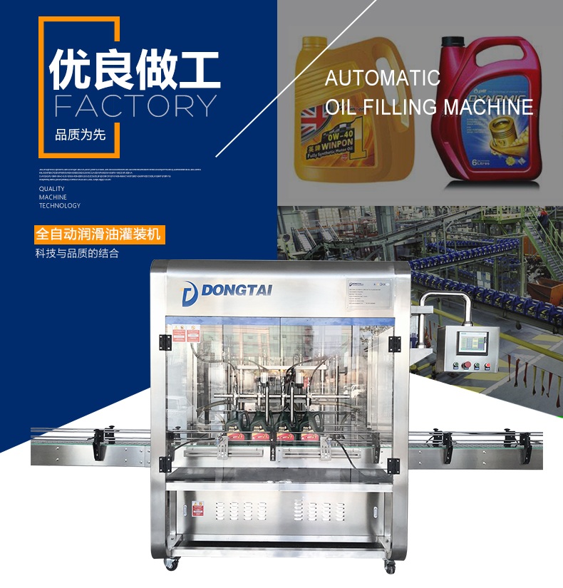 該潤(rùn)滑油灌裝機(jī)集機(jī)械、電子、氣動(dòng)為一體。該生產(chǎn)線由理瓶機(jī)、直線式灌裝機(jī)、旋蓋機(jī)、貼標(biāo)機(jī)、噴碼機(jī)等組成。具有自動(dòng)化程度高、成品率高、適用性廣、穩(wěn)定性好而受到廣大用戶青睞。該生產(chǎn)線能自動(dòng)完成理瓶、灌裝、旋蓋、貼標(biāo)、噴碼等功能。裝量精度高、使用使用壽命長(zhǎng)、耐高溫、耐酸堿,填補(bǔ)了內(nèi)空白。適用于油類半流體等不同粘度物料的灌裝,充分體現(xiàn)了本公司在產(chǎn)品設(shè)計(jì)、制造上的優(yōu)勢(shì)。灌裝系統(tǒng)采用PLC微電腦、人機(jī)界面組合控制、操作簡(jiǎn)單、維護(hù)方便。所有接觸物料部分的材料和裝潢材料全部采用優(yōu)質(zhì)不銹鋼制造,表面進(jìn)行了拋光處理,外形美觀、大方,不污染環(huán)境,符合GMP要求。